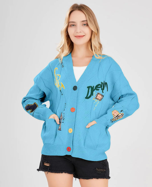 WOMEN'S CABLE KNIT WOOL BLEND CARDIGAN 'EMBROIDERY BLUE'