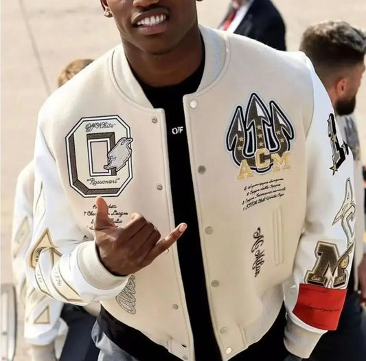 Off-White x AC Milan Varsity Jacket 'Cream/White'